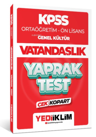 Yediiklim Yayınları 2024 KPSS Ortaöğretim - Ön Lisans Genel Kültür Vatandaşlık Çek Kopart Yaprak Test