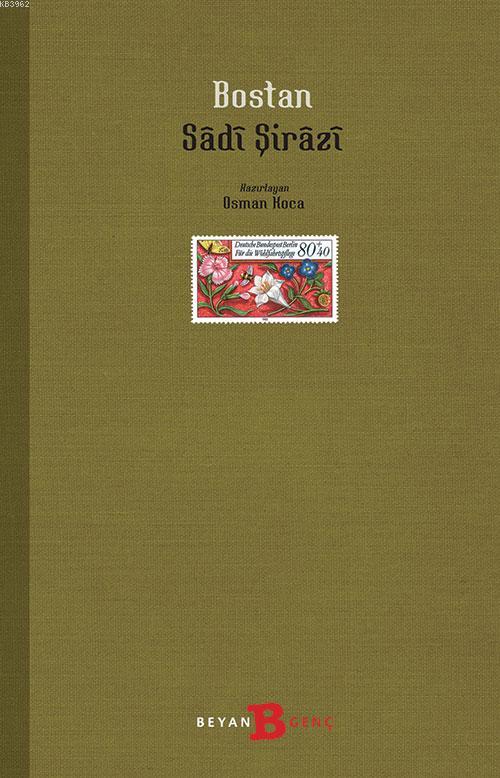 Bostan, Doğu kültürünün kaynak eserleri arasında yer alır. Sadî Şirâzînin bu ölümsüz eseri yüzyıllardır tüm toplumların kültür dünyasını etkilemeye devam etmektedir. Eserde başta dînî, siyâsî, ahlakî ve toplumsal olmak üzere hemen hemen bütün konulara yer verilmiştir. Müellif, eser boyunca derin dünya görüşünü zengin felsefi düşüncesiyle birleştirerek okura seslenmeyi arzulamıştır. Bunu yaparken de, diğer klasik doğu kaynaklarında olduğu gibi temsil, konuşma ve öykü tekniklerine başvurmuştur.