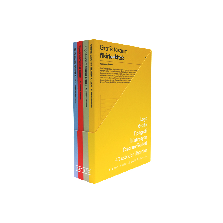 Tasarım Fikirler Kitapları, logo, grafik, tipografi ve illüstrasyon tasarımı adına 40'ar ustadan il-hamlar sunan dört kitaptan oluşuyor. Tasarımcı, sanatçı, editör ya da yazar... sanat ve tasarımla ilgilenen pek çok insana hitap eden bu kitaplar, halka mal olmuş tasarımlardan ve tasarımcılardan eşsiz örnekler sunuyor. Birbirlerini destekler nitelikte geniş bir içerik sunan Tasarım Fikirler Kitapları, hem kütüphaneleri-mizin raflarını süsleyen nadide parçalar, hem her an başvuracağımız başucu kitaplarımız olacak.
