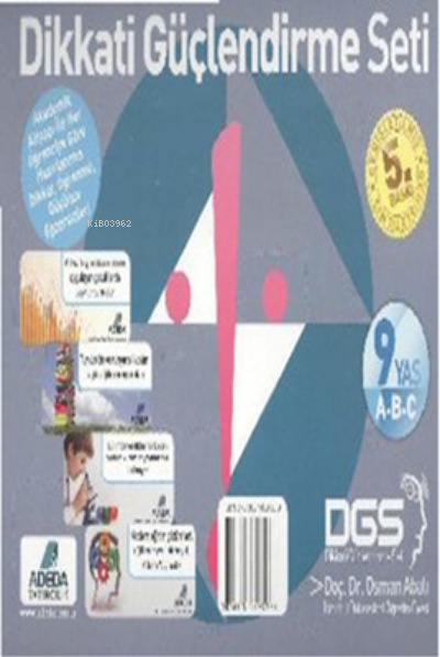 DGS 9 yaş 3 adet kitaptan oluşmaktadır.Her kitap 167 sayfadan oluşmaktadır.Kitapların sıralaması kesinlikle zorluk sıralaması olarak algılanmamalıdır.Kitapta çocuklarımızın yaşı içerisinde yapabileceği kolay ve zor egzersizler bir araya getirilerek sıralanmıştır.Üst üste zor egzersizler verilmemiştir ki çocuklar sıkılıp kitaptan vazgeçmesin.Dgs İle İlgili Hedefler / Genel FaydalarıÖğrenme sistemini aktif bir şekilde çalıştırıp ders başarısını artırır.Dikkat becerilerinde artış olur, ders ve akademik alandaki dikkat hataları azalır.Çalışmaya ve öğrenmeye karşı istek artar, okuldaki performansı yükselir.Görsel alana girenleri fark eder ve ayırt eder, masa başı ders çalışmalarındaki başarısı artar.El göz koordinasyonu artar, performans ödevlerinde üretkenliği artırır.İnce motor becerilerinde artış olur, el becerileri gelişir.Dinleme becerisi artar, işitsel algısında kuvvetlenme olur.Planlama ve sıralama becerilerinde artış olur, karşısına çıkan problemlerde fayda sağlar.Okuma ve okuduğunu anlamaya fayda eder.Zihinsel enerjinin bir konuya odaklanmasına yarar.Düşünme becerilerini destekler, yorumlama becerisini geliştirir.Esnek düşünebilmeye yardımcı olur. Kısa süreli bellek, uzun süreli bellek gelişimine fayda sağlar.Farklı bakış açıları ile problem çözmeye yarar sağlar.Aritmetik becerisine katkı sağlar.Soyutlama becerisine fayda sağlar.Sözel becerilerini artırır.Unutkanlığı azaltır. Kavrama süratini geliştirir.Farklı açılardan öğrenme becerisini destekler.PSİKOLOJİK FAYDALARISürükleyicidir, başarılı olma duygusunu pekiştirir. Kendine güveni özellikle akademik özgüveni artırır.Okulu ve çalışma sevgisini artırır.Kağıt, kalem ders ve öğrenme olumlu hale gelir.Boş zamanlarını değerlendirir.TV ve görsel araçların yol açtığı problemlerin azalmasına yardımcıdır.Duygu ve öfke kontrolü artar.